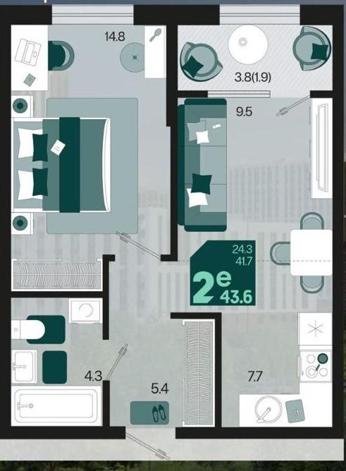 Продается 2-х комн. новостройка, 43.6 кв.м., 2/8 эт