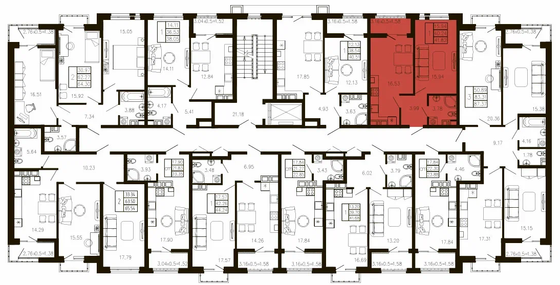 Продается однокомнатная новостройка, 41.82 кв.м., 3/9 эт
