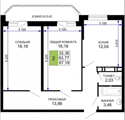 | Площадь, кв.м. | 67.19 |