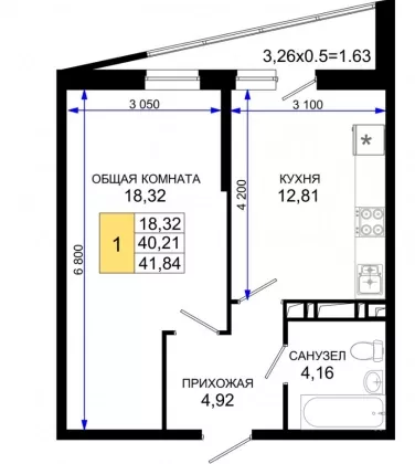 Продается однокомнатная новостройка, 41.83 кв.м., 12/19 эт