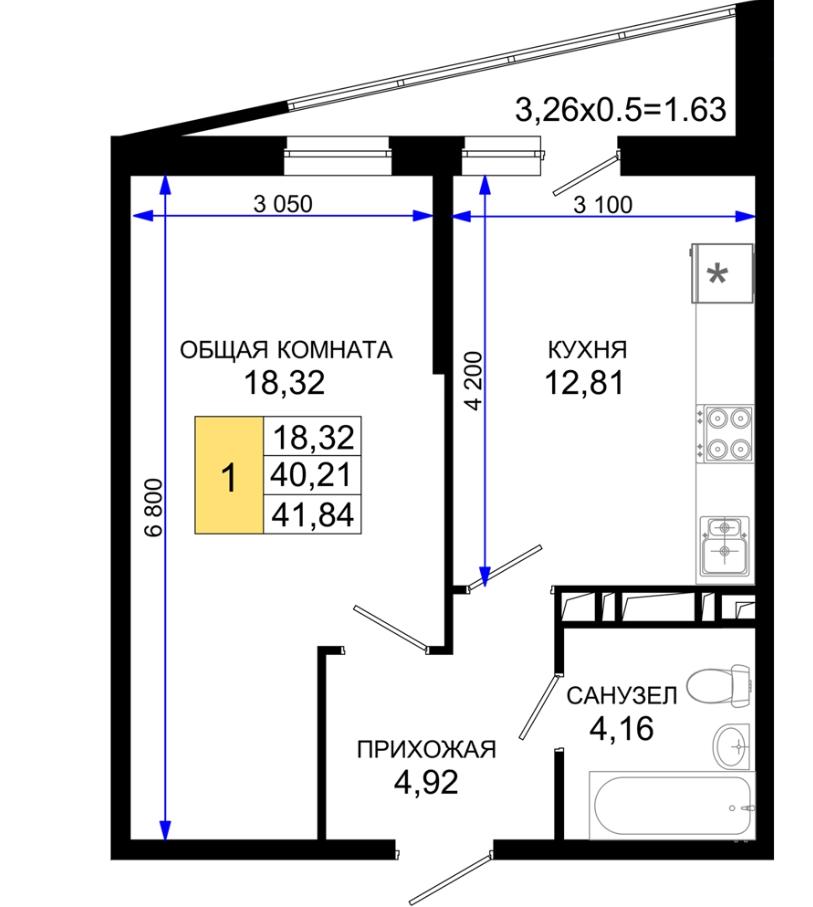 Жилая площадь | 18.32 |