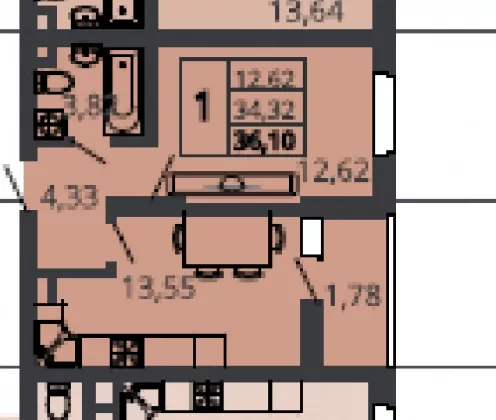 Продается однокомнатная новостройка, 37 кв.м., 11/18 эт