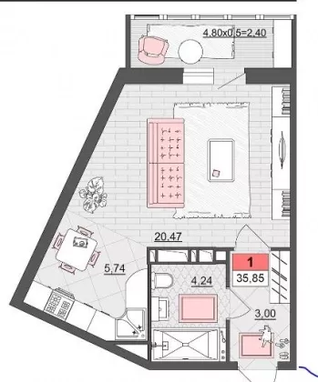 Продается однокомнатная новостройка, 35.8 кв.м., 10/19 эт