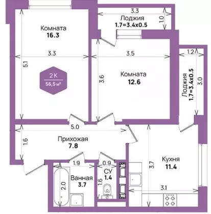 Продается 2-х комн. новостройка, 56.5 кв.м., 15/21 эт