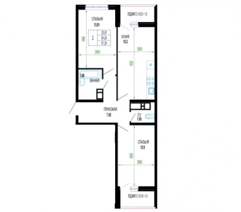 Продается 2-х комн. новостройка, 57.24 кв.м., 15/24 эт