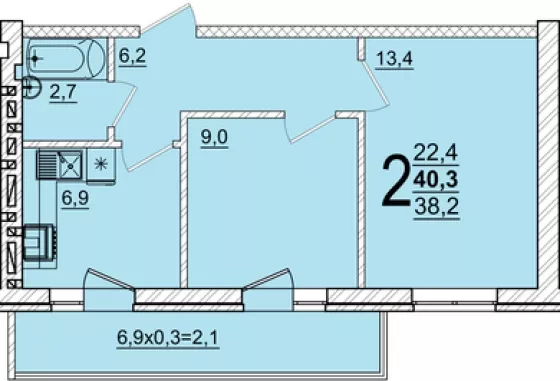 Продается 2-х комн. новостройка, 39 кв.м., 4/5 эт