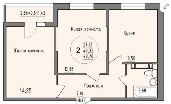 Продается 2-х комн. новостройка, 49.76 кв.м., 9/16 эт