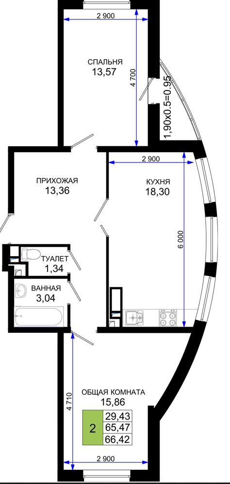 Продается 2-х комн. новостройка, 66.42 кв.м., 11/19 эт