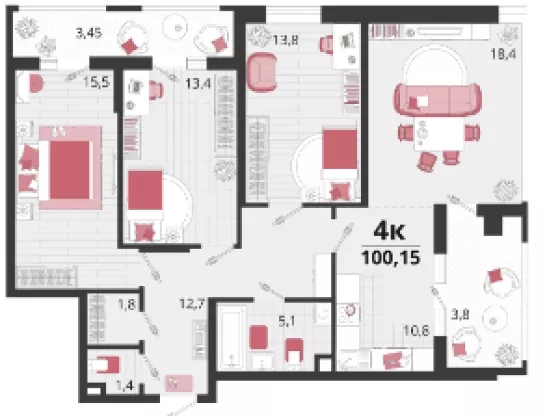 Продается 4-х комн. новостройка, 100.15 кв.м., 18/18 эт