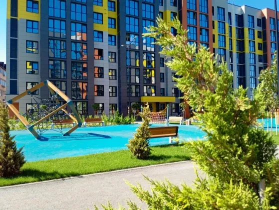 Особое внимание уделено безопасности- круглосуточное видеонаблюдение, огороженная территория, продумана система движения внутри комплекса, спортивная площадка с безопасным покрытием, безопасные пешеходные зоны, велодорожки, предусмотрен двор без машин.