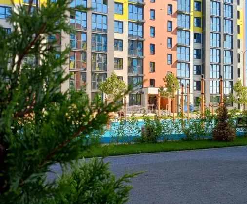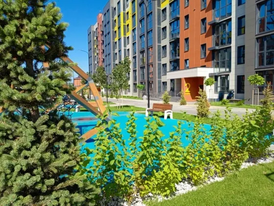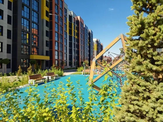 Благоустройство придомовой территории предусматривает качественное озеленение, места отдыха, зону спорта и игровые площадки для детей разных возрастов.