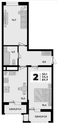 Продается 2-х комн. новостройка, 57.7 кв.м., 2/8 эт