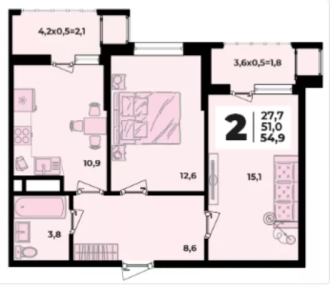 Продается 2-х комн. новостройка, 54.9 кв.м., 2/8 эт