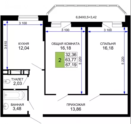 Продается 2-х комн. новостройка, 67.19 кв.м., 12/19 эт