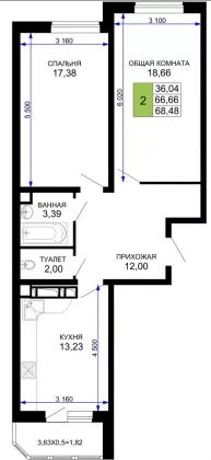 Продается 2-х комн. новостройка, 66.66 кв.м., 7/19 эт