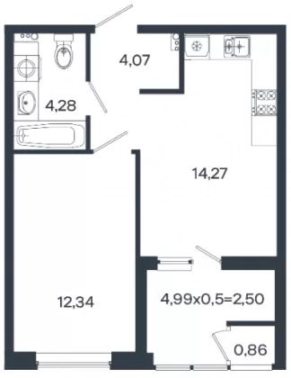| Площадь кухни, кв.м. | 14.27 |
