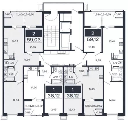Продается 2-х комн. новостройка, 59.03 кв.м., 13/18 эт