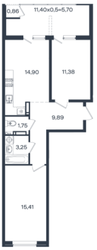 Продается 2-х комн. новостройка, 63.14 кв.м., 9/18 эт
