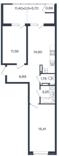 Площадь кухни, кв.м.14.9