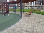 - Многофункциональное спортивное поле (футбол, волейбол, баскетбол), зоны для спорта и кроссфита, велодорожки, памп-трек 1500 м²