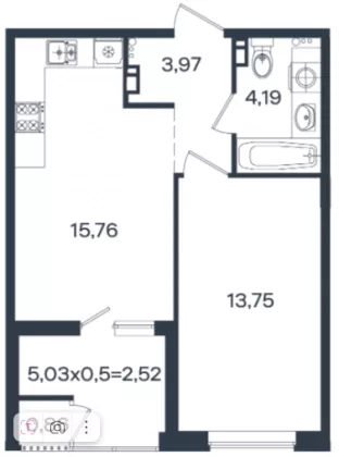 Продаётся 1-комнатная квартира с просторной кухней-гостиной!