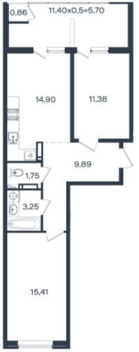 Площадь кухни, кв.м.14.9