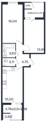 Продается 2-х комн. новостройка, 61.92 кв.м., 2/18 эт
