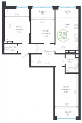 | Площадь, кв.м. | 87.41 |