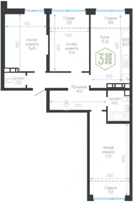 | Площадь, кв.м. | 87.58 |