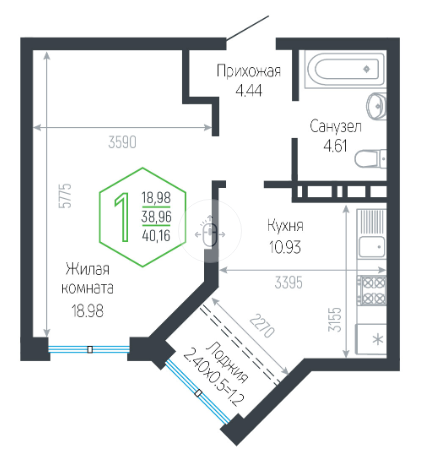 Площадь, кв.м. | 40.16 |