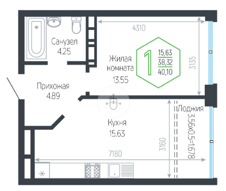 Продается однокомнатная новостройка, 40.1 кв.м., 13/16 эт