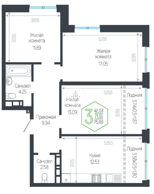 Продается 3-х комн. новостройка, 75 кв.м., 6/16 эт