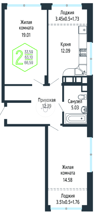 Продается 2-х комн. новостройка, 67.04 кв.м., 18/24 эт