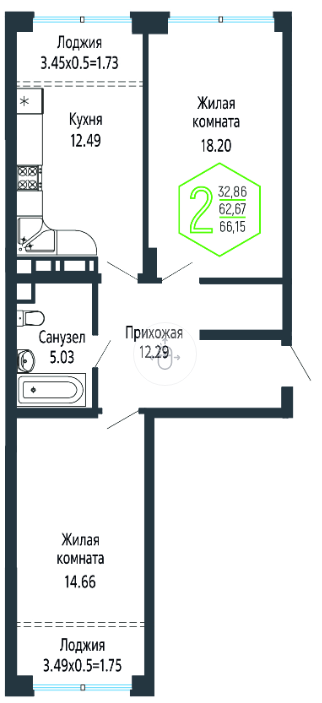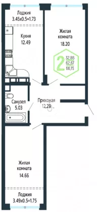 Продается 2-х комн. новостройка, 66.11 кв.м., 16/24 эт