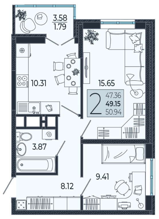 Продается 2-х комн. новостройка, 49.15 кв.м., 7/21 эт