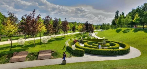 Уличные тренажёры, зоны для йоги и растяжки, детские площадки, площадка для баскетбола, теннисный корт, воркаут- комплекс для уличной гимнастики!