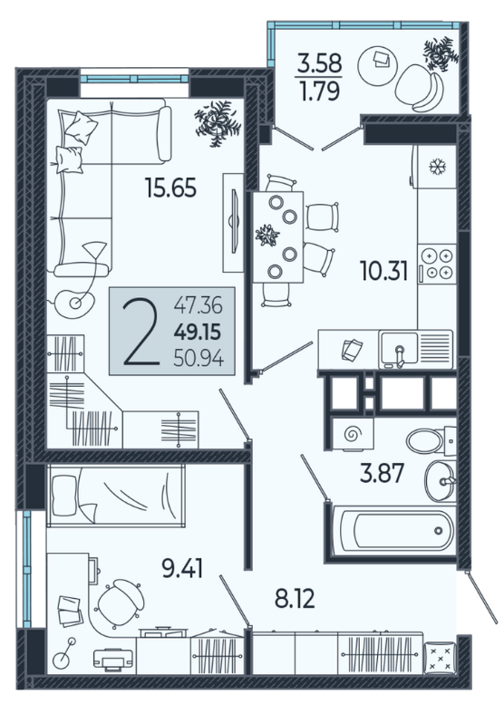 Продается 2-х комн. новостройка, 49.15 кв.м., 11/21 эт