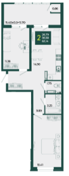 Продается 2-х комн. новостройка, 63.14 кв.м., 17/18 эт