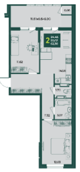 Продается 2-х комн. новостройка, 62.38 кв.м., 10/18 эт