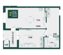 Продается 2-х комн. новостройка, 50.98 кв.м., 12/18 эт