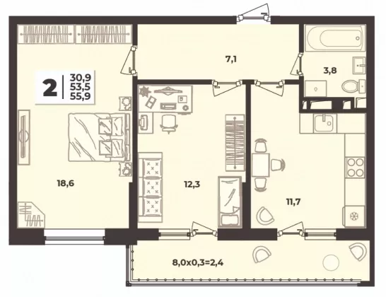 | Площадь, кв.м. | 55.9 |