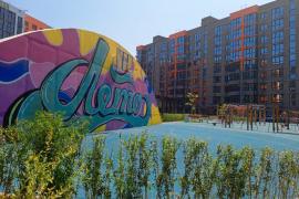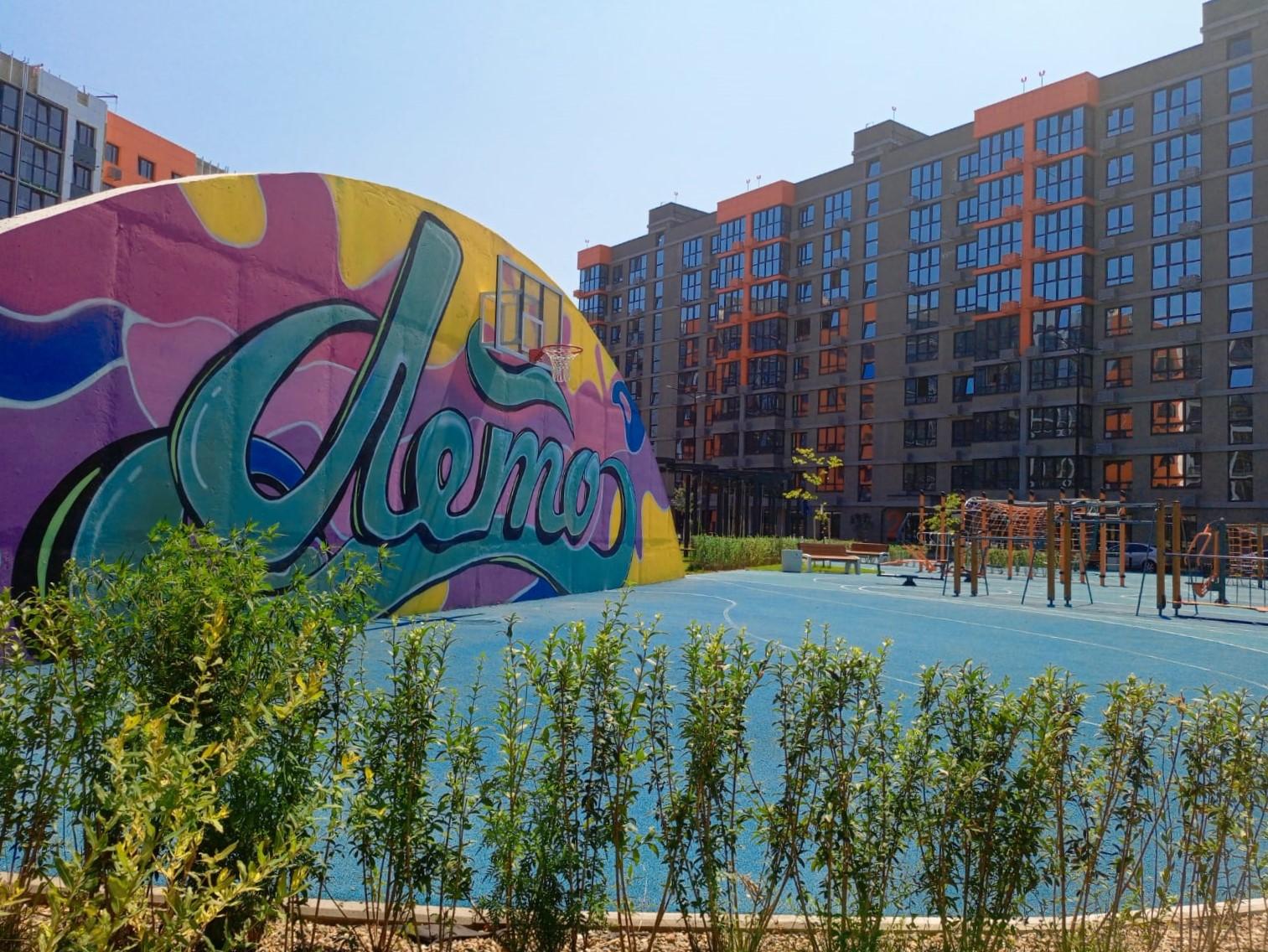Придомовая территория с ландшафтным дизайном разделена местами для отдыха, безопасные детские площадки с тренажерами, зонами воркаута с тренажерами и турниками, баскетбольная арт- площадка.