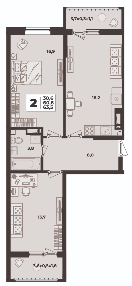Продается 2-х комн. новостройка, 63.5 кв.м., 2/9 эт