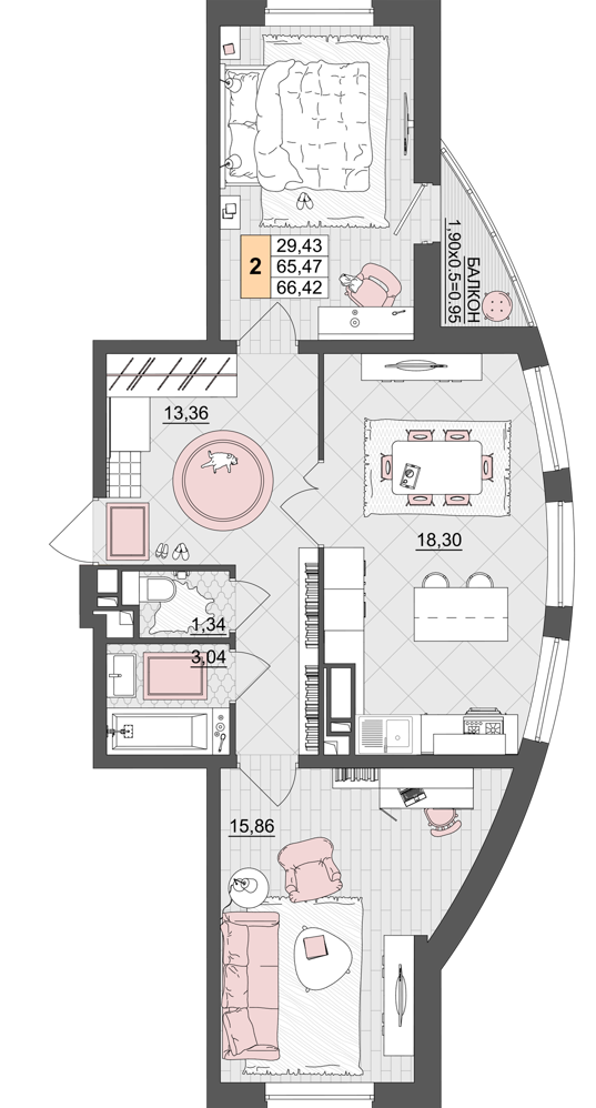 Площадь, кв.м. | 66.42 |