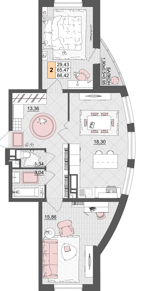 Площадь, кв.м. | 66.42 |