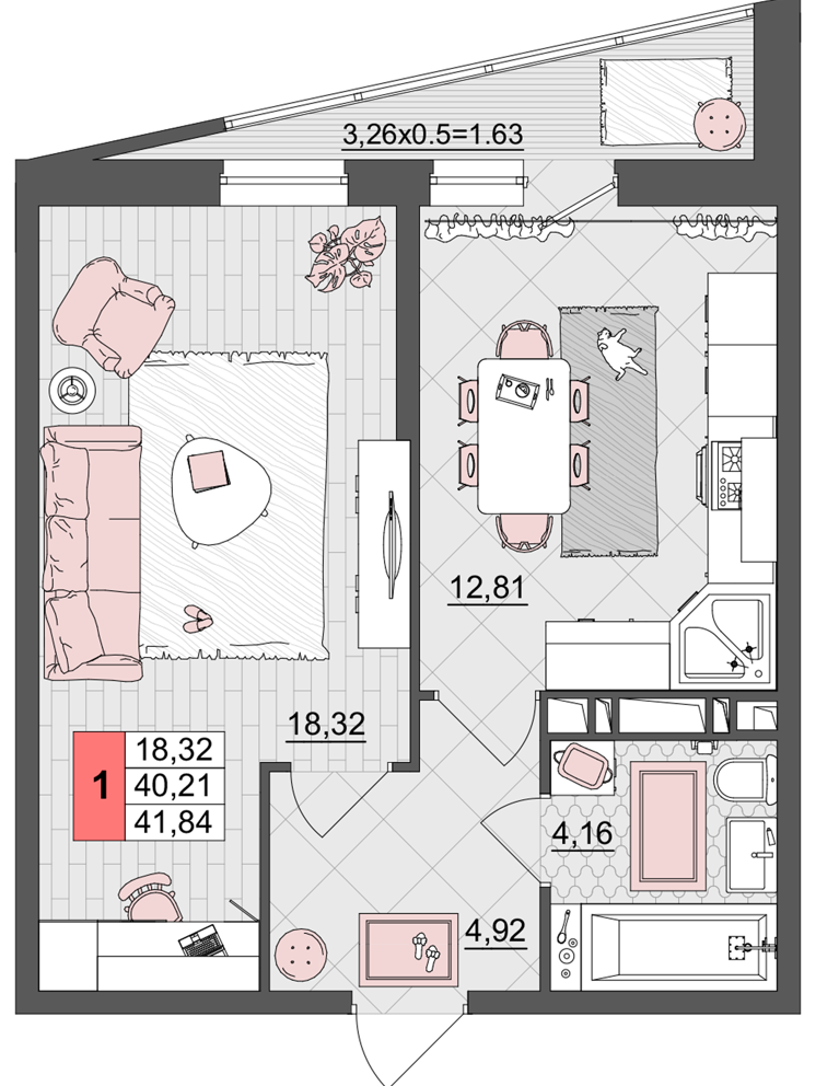Продается однокомнатная новостройка, 41.84 кв.м., 16/19 эт