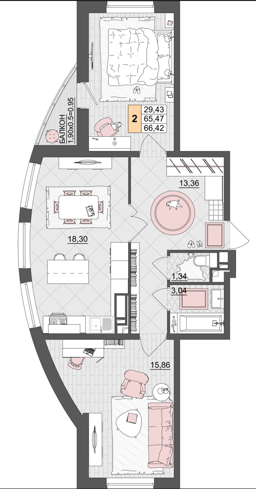 Площадь, кв.м. | 66.42 |