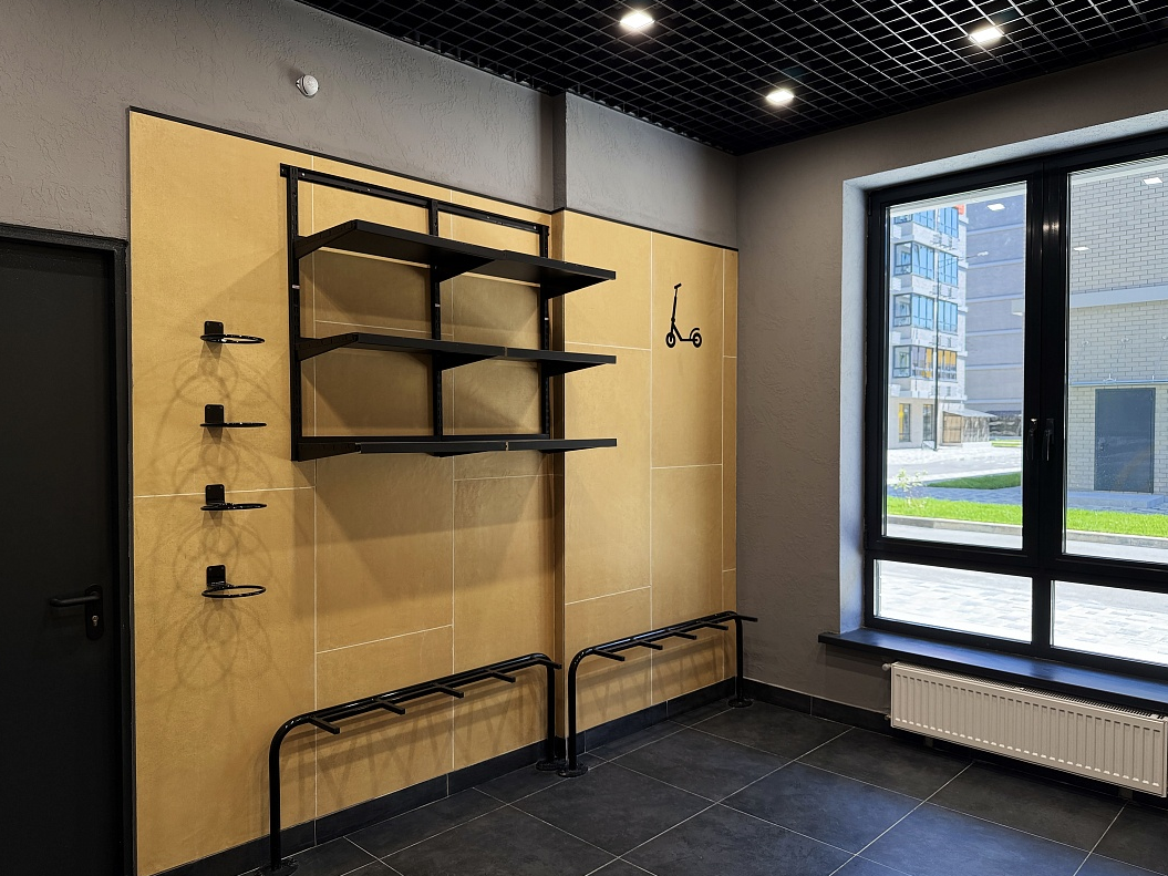 В подъезде установлен современный лифт, выполнена дизайнерская отделка входных групп. На первых этажах домов есть велосипедные, колясочные и санитарные комнаты.