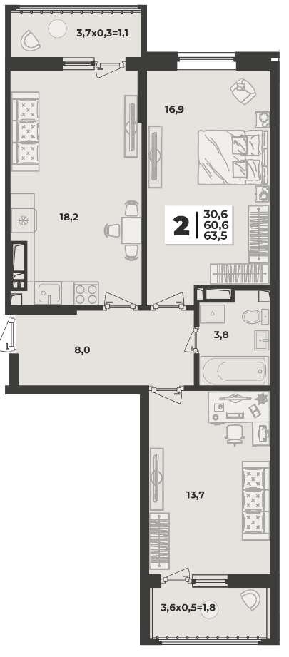 Продается 2-х комн. новостройка, 63.5 кв.м., 4/9 эт