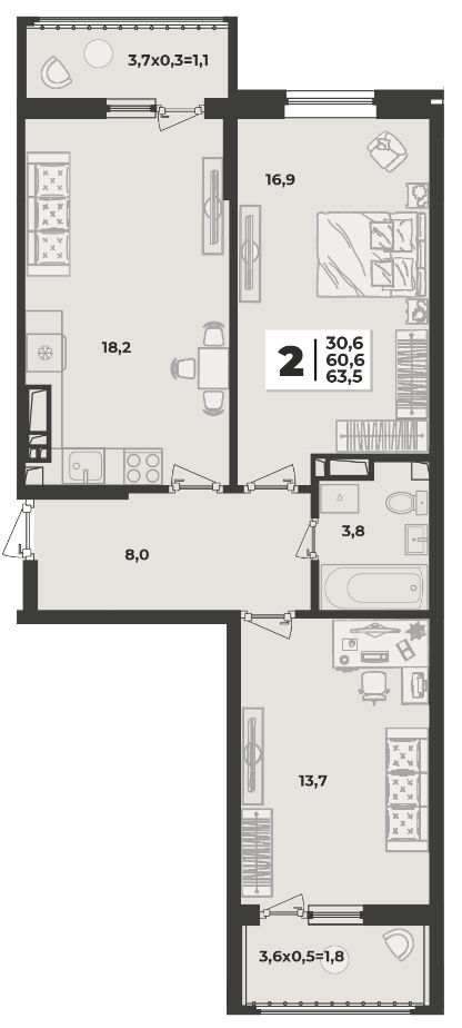 Продается 2-х комн. новостройка, 63.5 кв.м., 9/9 эт